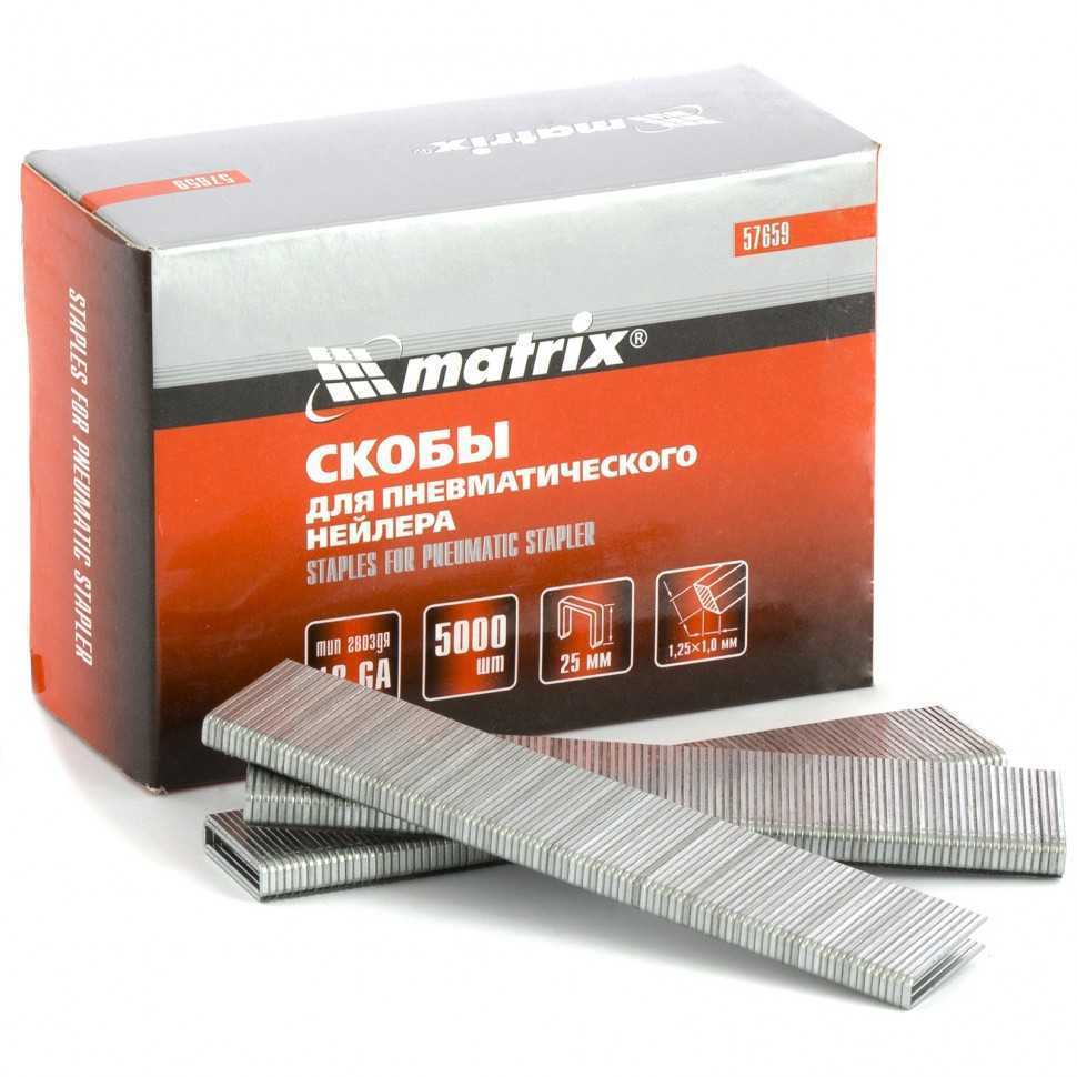 Скобы для пневматического степлера 18GA, 1.25 х 1 мм длина 25 мм ширина 5,7 мм, 5000 шт Matrix Скобы для пневмостеплера в Петрозаводске